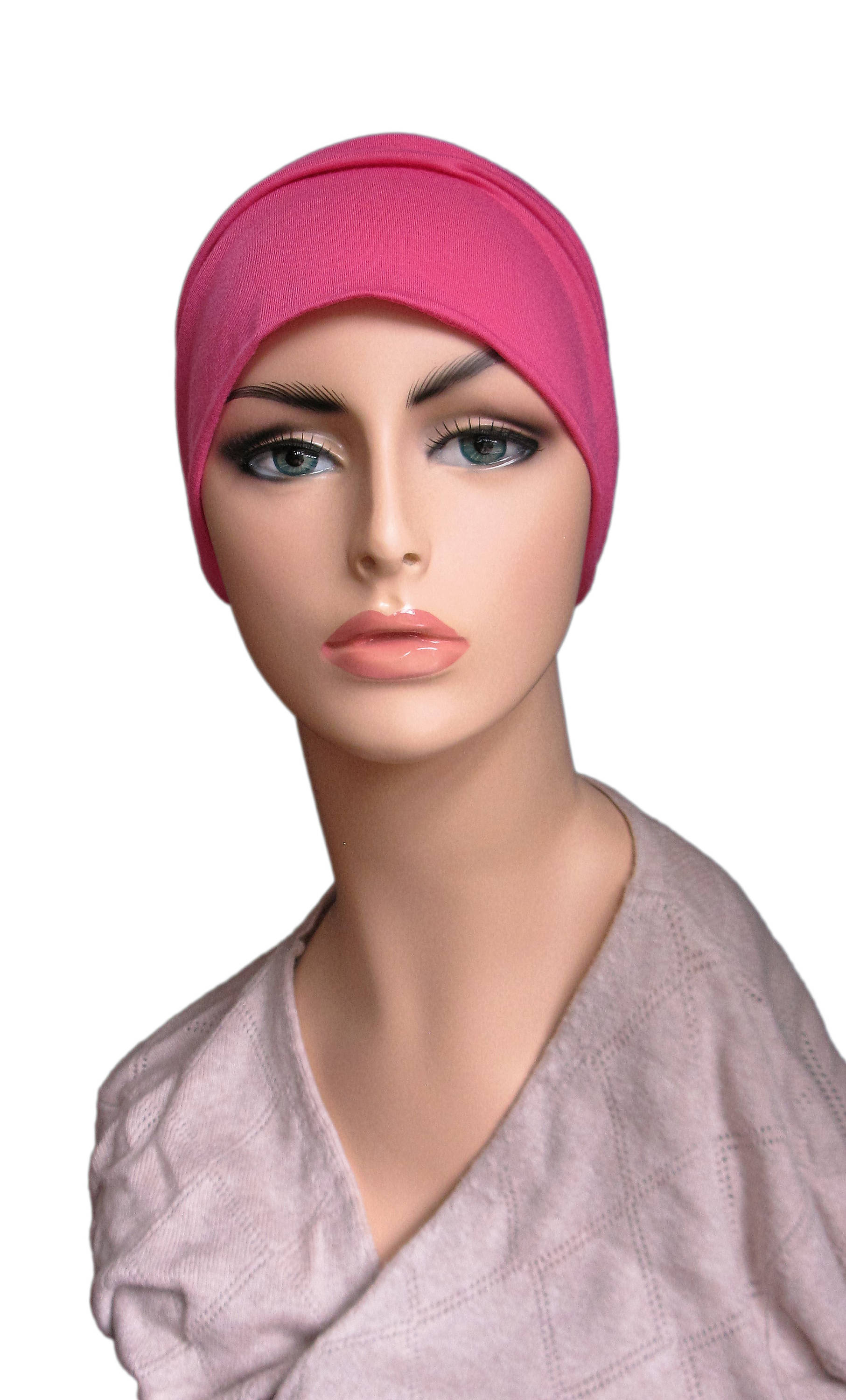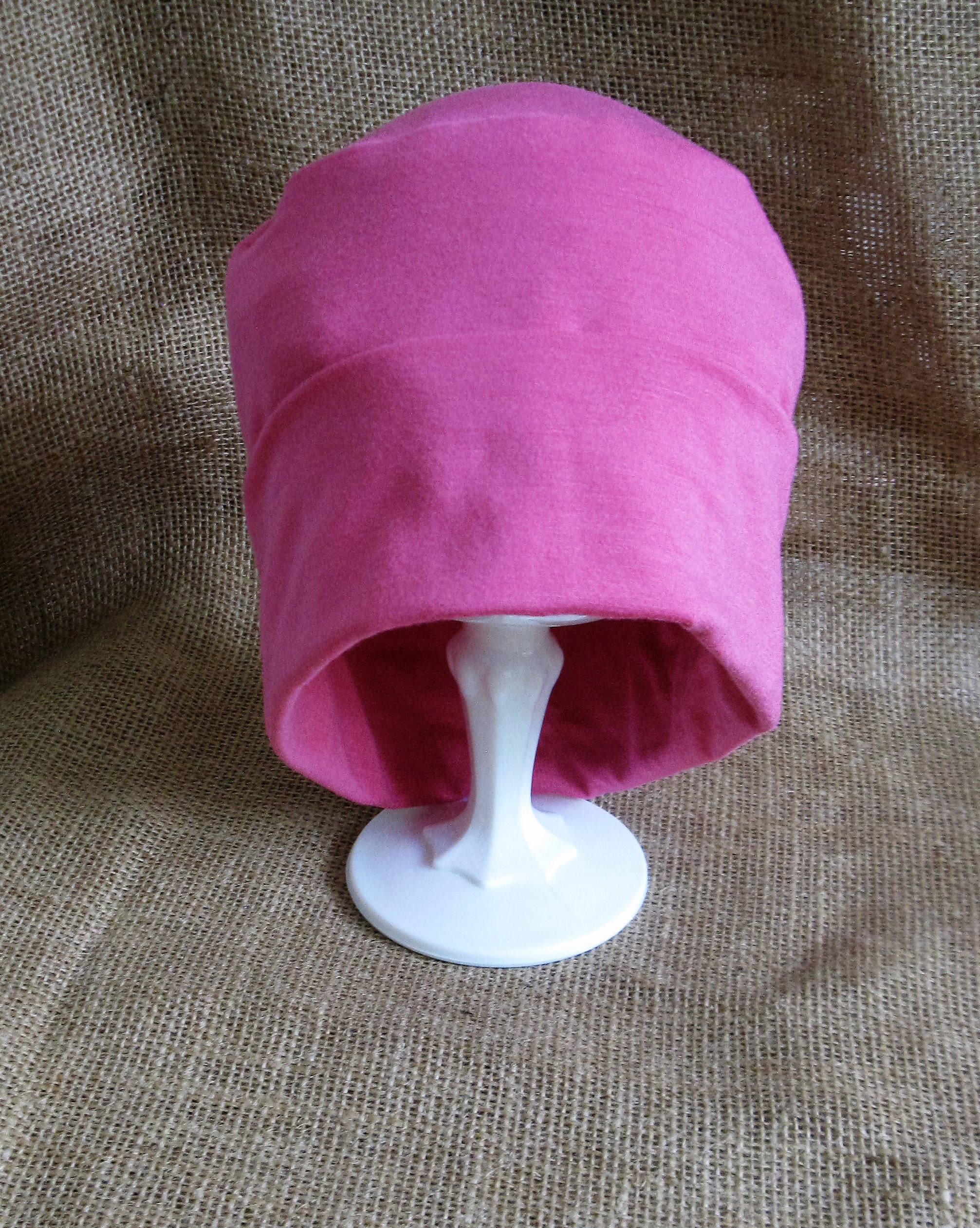 New color! Light Raspberry Bamboo and spandex knit chemo hat that is lightweight, ecofriendly, super soft, simple and elegant.